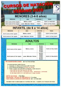 Ya puedes consultar toda la programación para menores, infantil y adultos, con distintos turnos, horarios y niveles para que nadie se quede sin disfrutar del agua este verano.